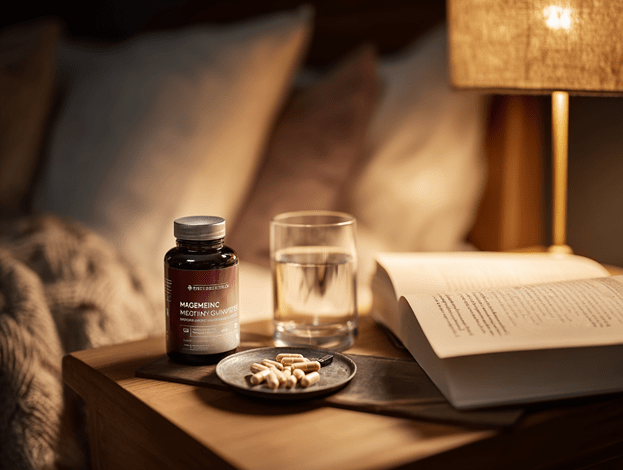 - Magnesium glycinate or threonate: 400-600mg 1-2 hours before bed. Calms the nervous system, supports GABA.
